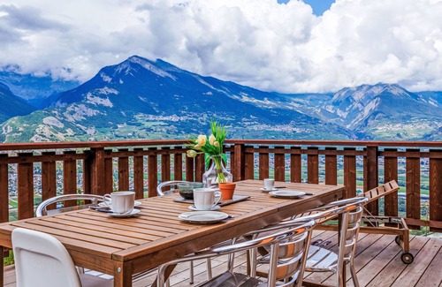 "Oxygène", 4-room chalet 85 m2 on 3 levels. Modern and tasteful furnishings: living/dining room with Scandinavian wood stove and cable TV. Exit to the terrace. Open kitchen (oven, dishwasher, 4 induction hot plates, toaster, microwave, electric coffee machine, raclette grill, fondue Set (cheese)). Shower/WC. On the lower ground floor: entrance hall. Upper floor: 1 room with 1 french bed (180 cm, length 200 cm). 1 room with 1 french bed (160 cm, length 190 cm). 1 children's room with 2 beds (90 cm, length 190 cm). Bath/WC. Terrace, north facing position and, east facing position. Terrace furniture, barbecue, deck chairs (1). Very beautiful view of the valley. Facilities: baby cot. Internet (WiFi, free). Parking (2 cars). Please note: non-smoking house. Maximum 1 pet/ dog allowed.