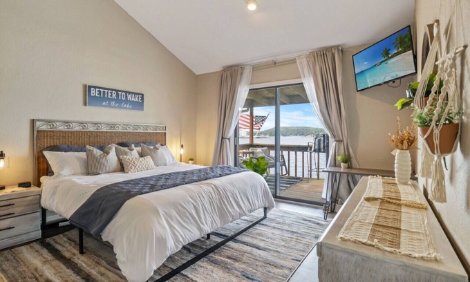You won’t find panoramic views like these! This beautifully decorated, one bedroom condo is conveniently located just off Horseshoe Bend at mile marker 3 and features gorgeous views of the main channel out of the living room, bedroom and balcony, an adorable loft space for the kiddos, and a large community pool! Located just 3 minutes from Big Thunder Marina where you can rent a boat or PWCs!