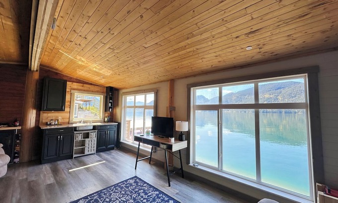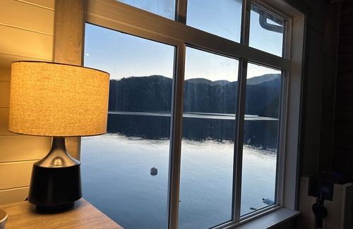Vortex, our lakeside caretaker cabin at Ozarks Island Retreat, offers a tranquil escape with breathtaking 280-degree views of the surrounding landscape. Its private deck and barbecue area provide a serene setting to unwind and soak in nature's beauty.