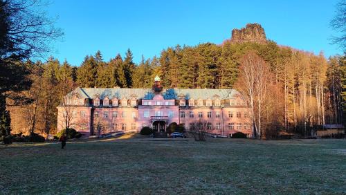 Ozdravovna Jetřichovice offers accommodations in Jetřichovice, 21 miles from Rathen Open Air Stage and 23 miles from Castle Oybin. The property is around 21 miles from Saxon Switzerland National Park, 23 miles from Zittau Goerlitz University of Applied Sciences, and 21 miles from The Bastion Bridge. Private parking can be arranged at an extra charge. The campground offers some units with garden views, and units come with a shared bathroom.
