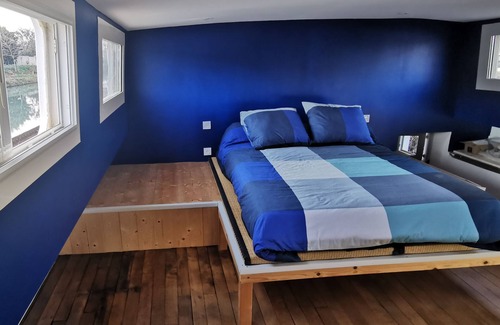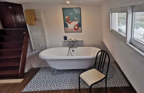 Relax in the garden (enjoy the outdoor furniture!) or sip a drink in the spa tub of this houseboat. As for the great indoors, you can come inside and enjoy the free WiFi and Smart TV.