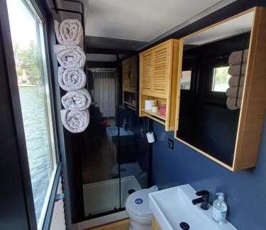 Pływający Apartament offers accommodations in Augustów, 2.6 miles from Augustow Train Station and 10 miles from Augustów Primeval Forest. With lake views, this accommodation features a balcony. The boat provides a sun terrace, a 24-hour front desk, and free Wifi is available throughout the property. The boat consists of 1 bedroom, a living room, a fully equipped kitchen with a microwave and a kettle, and 1 bathroom with a shower. Towels and bed linen are provided in the boat. The property has an outdoor dining area. There is a snack bar and bar. For guests with children, the boat offers outdoor play equipment. The Augustów Canal is a 9-minute walk from Pływający Apartament, while Marina Augustow is 0.7 miles away. Olsztyn-Mazury Airport is 106 miles from the property.