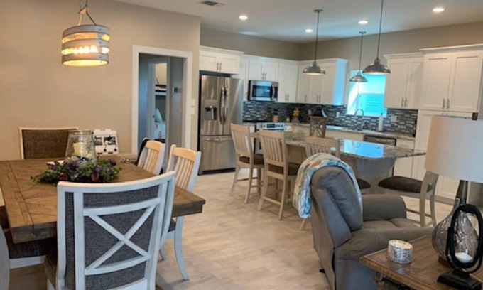 BRING YOUR BOAT AND THE WHOLE FAMILY! *PET FRIENDLY!* This tastefully furnished Port O' Connor retreat is perfect for fisherman and families alike! It's conveniently located 4 blocks from Froggie's Boat Ramp/Bait Store & 5D Steakhouse. Our setup offers a safe gated entry, large garage area for COVERED BOAT PARKING, and plenty of room to entertain. Enjoy Ping Pong, Cornhole, giant jenga or the gas grill! One bedroom and bathroom is upstairs and separate, makes well for a bit of privacy. Come check out P.O.C!