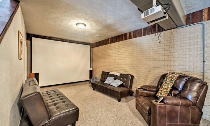 Living & Entertainment: Projector TV, movie room, leather seating, board games, cable TV