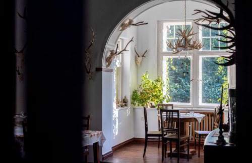 Featuring a shared lounge, Pałac Myśliwski Orle Solutions offers accommodations in Mirosławiec. Built in 1907, the property includes spa facilities and steam room. There's an outdoor fireplace and guests can make use of free Wifi, free private parking, and an electric vehicle charging station. All units come with a seating area, a flat-screen TV with streaming services, and a private bathroom with bathrobes and walk-in shower. A terrace with an outdoor dining area and garden views is offered in all units. At the bed and breakfast, each unit has bed linen and towels. Continental and full English/Irish breakfast options with warm dishes, local specialities, and fresh pastries are available. Guests are welcome to eat at the on-site romantic restaurant, which is open for dinner, lunch, and cocktails. For guests with children, the bed and breakfast features an indoor play area and a children's playground. Guests at Pałac Myśliwski Orle Solutions can enjoy cycling nearby, or make the most of the garden. Solidarity Szczecin-Goleniów Airport is 66 miles from the property, and the property offers a paid airport shuttle service.