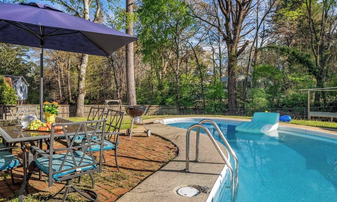 Welcome to the Paddlecreek Pool House! This pet-friendly retreat is perfect for families and groups, offering a luxurious stay with a private pool, game room, and a spacious porch with kid/pet gates. The porch is equipped with a charcoal grill, ample seating, a day bed swing, and a projector for ultimate relaxation and entertainment!