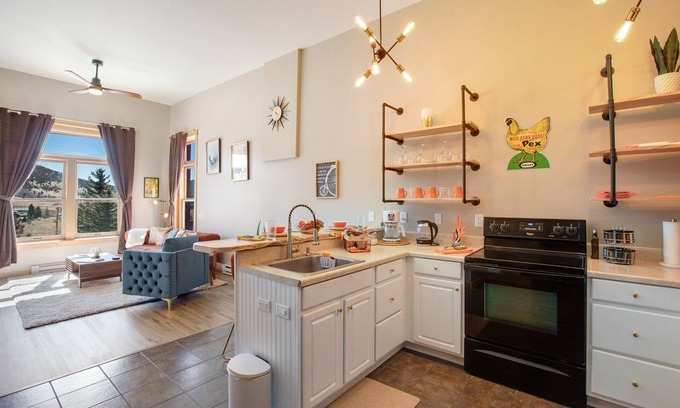 Experience the charm of our retro 1-bedroom, 1-bath apartment located in the historic Page Building. This unique space offers breathtaking views of downtown Victor and the majestic surrounding mountains.