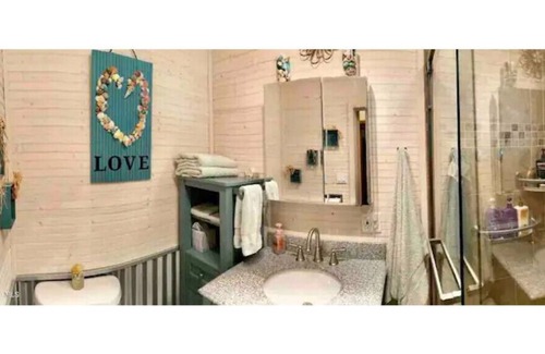 The newly remodeled bathroom has an amazing shower, great pressure and on demand hot water. It does take a few minutes for the hot water to get to the kitchen and shower but once it’s hot it’s not going to run low. A hair dryer is also available.