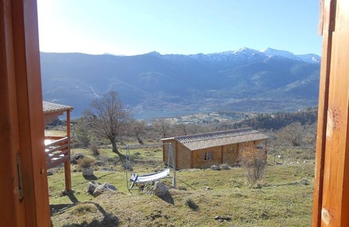 The Paglia Orba will welcome you, for a night or a stay, in a cosy atmosphere, two bedrooms, one with a double bed and the other with bunk beds, a bathroom with shower cubicle and a kitchen equipped with a dishwasher and all the necessary equipment to prepare your meals. The terrace with its garden furniture will allow you by good weather to eat outside and if you wish it you can cook on the plancha. The view on the mountains or the lake is magical here! And if you want to admire the stars, a double deckchair is placed just in front of your chalet just for you!