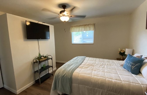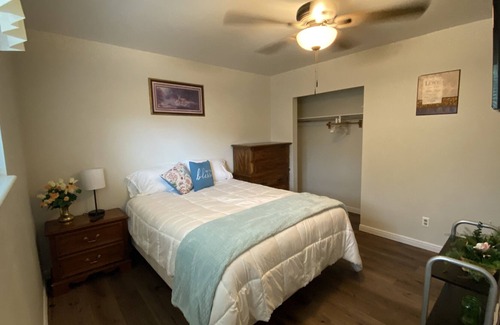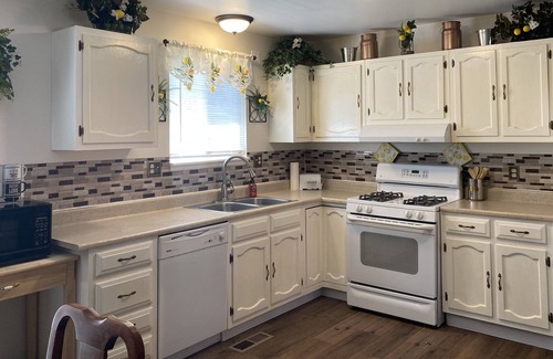 Cute home with big yard and plenty of parking. Backyard has a deck and patio with furnishings for gatherings with high fence for privacy. Has 3 bedrooms with TV's in all. Washer and Dryer in lg. bathroom. Lg. kitchen with microwave, coffee pot, dishes and many more amenities. Has a cute bar for open concept main floor. Dining area and comfy living room for relaxing. If you love riding the ATV trails they are right out the front door or if you love riding horses, the Black Hawk arena is 2 miles away.