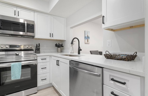 Enjoy sunrise to sunset from our great resort that has private bay to beach access . 2 bedroom 2 Bath ground floor with walk out balcony .Each bedroom offers private en-suite, Clean and bright open floor plan, well appointed kitchen ,Central A/C .