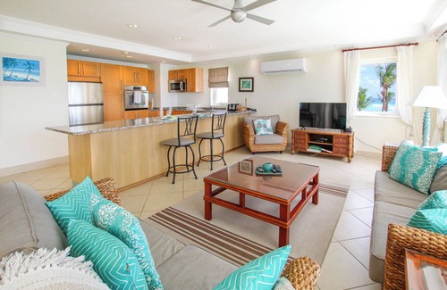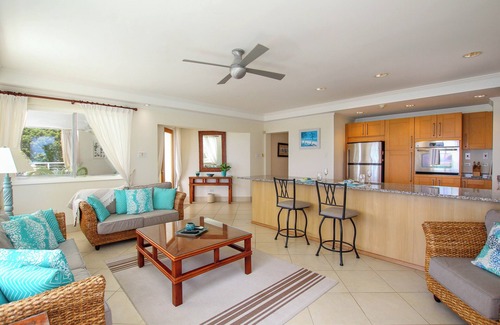 Palm Beach 401 is a beautifully outfitted 2-bedroom condominium, featuring an open-plan layout that flows seamlessly from a spacious lounge area with comfortable seating centred around a large flat-screen TV. This unit is ideal for relaxation, with one of the best sunset views in Barbados available from the balcony, accompanied by the tranquil sound of the ocean.
