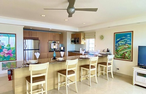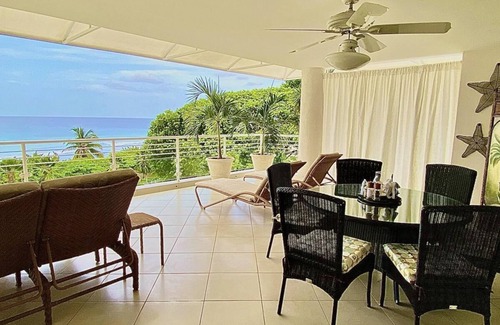 Palm Beach 502 is a fifth floor, two-bedroom beachfront condominium located on the south coast of Barbados. This wonderful condo is well outfitted with an expansive open plan kitchen and living area offering a well-equipped kitchen with seating for 4 at the granite countertop. The main lounge area is spacious with comfortable seating focused on a large flat screen TV.