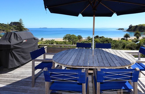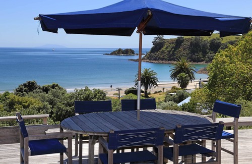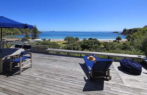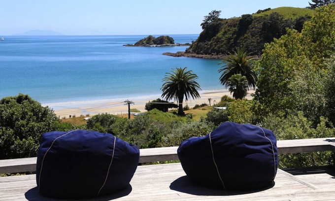 This private north facing property gets all day sun and has fabulous views of Palm Beach, one of Waiheke Islands more popular beaches. It has great indoor outdoor flow, a large deck for enjoying the all-day sun and magnificent views. Open plan living, dining, kitchen and french doors that open out to the deck.