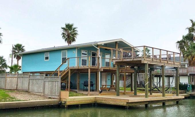 Palm Breeze is a beautiful 2BR/2BA bay canal house in Jamaica Beach, TX. Relax in the Texas sun on an amazing newly refurbished deck with friends and family. Bring the boat (additional application fee applies) and enjoy a day on the bay, then fish in the evening with 3 overhead deck lights sure to bring fish to the grill (2 charcoal grills available for use). We are a quick 5 minute car/bicycle ride to the beach or travel 15 minutes down to Pleasure Pier or The Galveston Island Strand.
