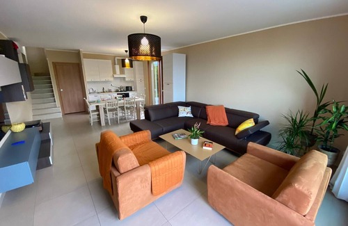 On the first hill of Baveno in a sunny and panoramic position there is Villa Palmito with private heated swimming pool, closed from 1st October. The villa belongs to a complex of 3 villas, but is completely independent. From the parking and garage level, go up the stairs leading to the mezzanine floor. Here is the main entrance with a large living room with sitting area, two armchairs that become single beds, satellite TV and stereo system, the dining table and a modern well-equipped kitchen opening onto the living room. In front of the living room there is a large terrace overlooking the lake with flowers and plants with a large dining table, a large outdoor lounge and also a barbecue area with another smaller table. The ground floor is completed by a bathroom with a very large shower. From this floor you go down to the garage floor where there is the laundry room with washing machine, the large closed garage for 2 cars and the covered garage open for 2 more cars. From the living room floor going up the staircase you reach the first floor where there is a single bedroom overlooking the swimming pool behind the house and a bathroom with shower and the main double bedroom with TV which has a lake view and a beautiful flowered terrace equipped with table and chairs. On the top floor there is a service bathroom without shower and a large lake view room with TV and two queen size beds and a double bed. The house has air conditioning and wifi, the furniture is new. From the terrace on the ground floor, climbing the staircase, you could reach the garden at the rear of the villa where there is the new heated swimming pool 4 x 8 x 1.40 m deep around which there are umbrellas, sun loungers and a shower. From one side of the sunbathing area you can enjoy the view of the lake. Villa Palmito is in a quiet location, ideal for a relaxing stay to discover Lake Maggiore, the center of Baveno and the lakefront can be reached in about 10 minutes on foot. Small and medium pets are allowed on payment.
