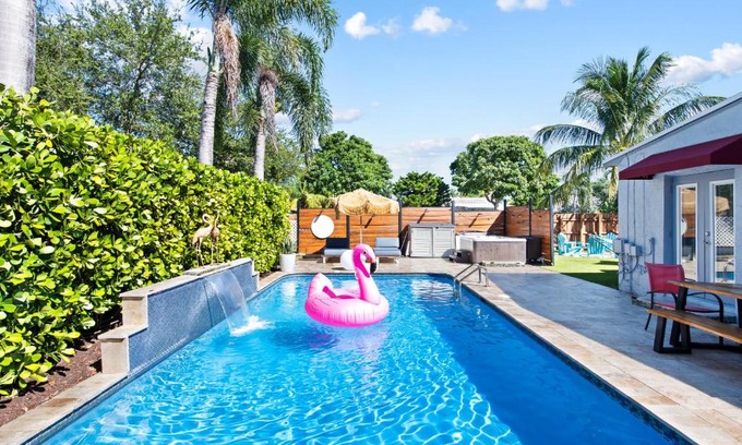 Palms Retreat! Giant Heated Pool-HotTub-FirePit-5Min2Beach-Pets-EV Chgr is located in Fort Lauderdale.