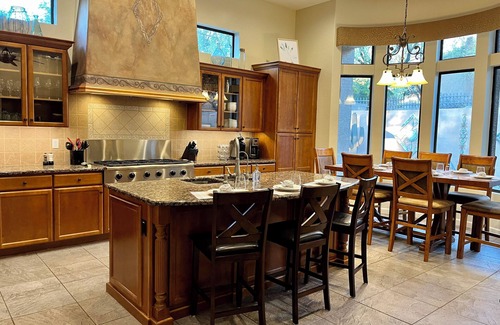 Minimum 31 night rental due to HOA rules. Our beautiful home in the gated community of Las Sendas is waiting for you and your family to create lasting memories. Our home has 5 bedrooms, each with king sized beds and a TV, two bedrooms have ensuites and there is a third bathroom. The picturesque back yard has a swimming pool with a water feature and hot tub (additional fee to heat), a putting green, an outdoor gas fireplace and a built in grill that has a small fridge to keep your beverages cold. Inside there is a pool table and slot machine as well as board games for children of all ages. You can take advantage of the biking trails nearby by with the bikes provided or choose one of the many nearby trails and go for a hike. There are many great restaurants a short drive away but should you choose to eat at the house the fully equipped kitchen has everything you need to prepare and serve a meal to a large group. We are conveniently located to both Mesa Gateway and Sky Harbor airports.