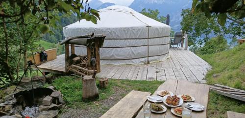 23 miles from Einsiedeln Abbey in Sisikon, Panorama Jurte Über Dem Uri-See A features accommodations with access to an open-air bath. This beachfront property offers access to a terrace and free private parking. On clear days, guests can head outside to enjoy the luxury tent's outdoor fireplace or simply kick back and relax. There is a seating area, a dining area, and a kitchen complete with a fridge, a minibar, and kitchenware. The luxury tent offers bed linen, towels, and daily room service. During warmer months, you can make use of the barbecue facilities and eat on the private balcony. A private beach area is available on-site, and both hiking and walking tours can be enjoyed close to the luxury tent. Lucerne Train Station is 30 miles from Panorama Jurte Über Dem Uri-See A, while Lion Monument is 31 miles from the property. Zurich Airport is 51 miles away.