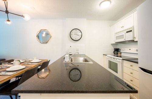 Nestled on the slopes of Blackcomb mountain, this ultimate ski in/ski out location is steps from the new Blackcomb gondola. Complete with 3 hot tubs, a pool, a fitness center, free ski valet and a 24/7 front desk, this updated lodge style accommodation has everything you need for your dream Whistler vacation. Prepare homecooked meals in comfort in this newly remodeled apartment and enjoy all the essentials that'll make you and your family feel right at home.