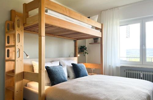 26 miles from Freiburg Cathedral in Lenzkirch, Panoramablick mit Schwimmbad und Sauna offers accommodations with access to spa facilities, fitness room, and indoor pool. The property is around 27 miles from Freiburg Central Station, 29 miles from Messe Freiburg, and 3.8 miles from Hochfirst Ski Jump. There's a sun terrace and guests can use free Wifi and free private parking. Offering a balcony and mountain views, the spacious apartment includes 1 bedroom, a living room, satellite flat-screen TV, an equipped kitchen, and 1 bathroom with a shower. Towels and bed linen are offered in the apartment. This apartment is allergy-free and non-smoking. You can play table tennis at the apartment, and the area is popular for hiking and walking tours. Guests can swim in the pool with a view, and go skiing or cycling. Adlerschanze is 12 miles from Panoramablick mit Schwimmbad und Sauna, while Schwabentor is 26 miles from the property.