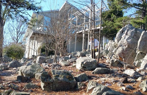 This retreat is located on 3/4 acre of walkable mountain ridge property. Paths have been created along the spectacular rock outcrops, landscaped and maintained for the enjoyment of our guests. A special and whimsical fairy garden, and various sculptures along the paths are a delight for adventurous children. I Spy is a very popular game on the nature trail around the property.
