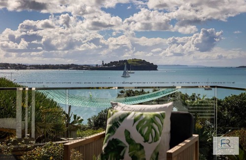Experience incredible ocean views at this beautiful 2 bedroom home with spa pool in Orakei, located conveniently close to the city. Both bedrooms have ensuites, offering ultimate privacy for couples travelling together, making it the perfect base for exploring Auckland. Guests will enjoy relaxing on the beautiful balcony while the sun is out, and enjoy the central heating throughout accompanied by the ambiance of the aesthetic tv/fireplace.