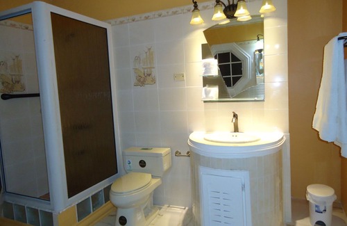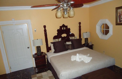 Tired of feeling imprisoned at hotels? Then Come to CASSYVILLE! Cassyville’s located on a private gated property, in a serene resort community, five minutes off the main road from Falmouth, Trelawny. Nestled on a hill overlooking two major resorts and the Caribbean Sea! Similarly, to the spectacular views outdoors Cassyville is a newly built two storey house, with six bedrooms, six bathrooms, two kitchens, and a roof balcony! Frolic and enjoy the cool breeze of the Caribbean Sea on the veranda downstairs or the roof balcony upstairs. The pinnacle of the house is a Gazebo Bar and two restrooms, where you may relax, bask in the sun and enjoy the panoramic view of the environs. Worried about being alienated because you are a tourist? Don’t be, the owners live on property to ensure you are loved and experience our culture to the fullest. Come let Cassyville be your next destination. Come live the culture, feel free and be at home as our motto states “Out of Many one People.”