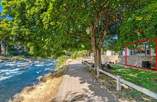 Your very own private cottage overlooking the river awaits you when you book condo 257 Juniper Twist. Access the condo through your private entrance and immediately be greeted by the panoramic view of the majestic rapids of the Deschutes River!