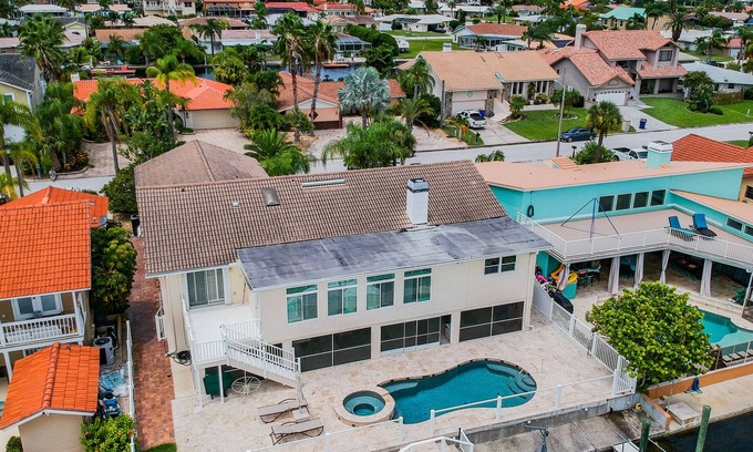 This waterfront home spectacular and spacious with it's supreme upgrades makes your Florida living experience really give you the feeling that you have arrived at your optimal destination. As you walk inside and make your way through the cathedral ceilings to the rear of the home, looking out, you realize that the view outside is a waterfront paradise, equipped with a gorgeous pool, spa package, travertine decking, and all the amenities of a 5 star resort. Back inside you have all the necessities covered including an elevator chair if needed inside the garage stairwell. Washer/Dryer are off the kitchen area also. The lovely views inside and outside make this a grand home to make for your Florida vacation stay.