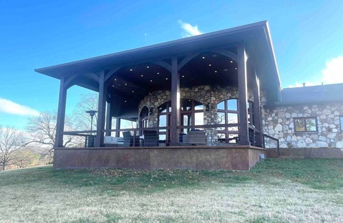 Enjoy the panoramic Grand Lake waterfront of Stony Point. Capture family memories on a vacation or by having your wedding here with this view. Behind the gates setting on 20 acres, you will find over 1,200 ft of main lake waterfront to enjoy during your stay. Paved road around the point, boat ramp, swim dock, 2 slip boat dock. The Lodge is over 4,500 SF, sleeping up to 20 guests, with an 825 SF covered deck for outdoor entertainment. Have a bigger group: We have an additional house and cabins on property to add more options, water toys, kayaks, paddleboards and Golf carts for your rental needs. We welcome corporate retreats too!