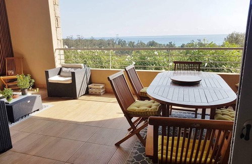 This flat is ideally located near the marina of Solenzara, a few meters from the beach and shops, in a luxury residence with sea view.