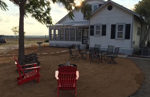 Fully-restored 100 year-old Texas farmhouse just east of Georgetown set atop a gentle hill in the rolling farmland of central Texas. Kick back and enjoy the 360-degree sweeping views of sunrises and sunsets from the porch or patio. The perfect choice for a relaxing retreat; close enough to the city but squarely in the middle of "get away from it all!".
