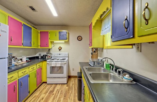 Welcome to Papa's Place | Charming Family Retro Homestead! Set against the backdrop of the picturesque mountains, this inviting retreat offers a nostalgic family atmosphere perfect for memorable stay. The home features 3 bedrooms: two with queen beds and one with a single bunk bed, comfortably accommodating up to 6 guests. Enjoy the convenience of 2 full bathrooms with showers, a fully equipped kitchen, and a spacious dining area. The expansive yard is perfect for your dogs to roam and play. Experience mountain serenity and family warmth at Papa's Place!