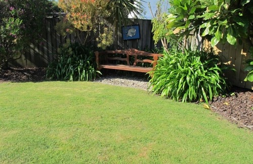 Peaceful large garden complete with shade sail, bbq, pizza oven, hot outdoor shower.