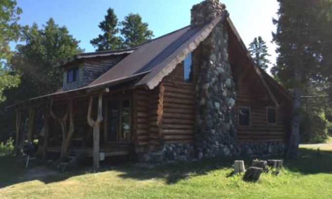 Roomy waterfront log home with a beautiful stone (wood burning) fireplace