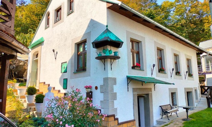 Paracelsus house offers accommodations in Banská Bystrica, 8.7 miles from wooden church Hronsek UNESCO and 13 miles from Zvolen Castle. This property offers access to a terrace and free private parking. On clear days, guests can head outside to enjoy the vacation home's outdoor fireplace or simply kick back and relax. With free Wifi, this 3-bedroom vacation home offers a cable flat-screen TV, a washing machine, and a fully equipped kitchen with a microwave and fridge. Guests can enjoy an ambient stay in their soundproof room with parquet floors and a fireplace. The vacation home offers bed linen, towels, and laundry service. A mini-market is available at the vacation home. Guests can enjoy the outdoor swimming pool and garden at the vacation home. Vlkolinec Village is 30 miles from Paracelsus house. Poprad-Tatry Airport is 78 miles away.