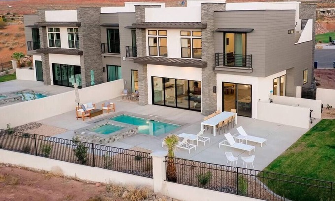 This spacious 4123 square foot 7-bedroom bath private home is perfectly situated on the eighth hole of the Coral Canyon Golf Course. This is the ultimate vacation rental perfect for family vacations, golf retreats and family reunions. You will have 360-degree unobstructed views of the golf course, pool and mountain ranges. You will enjoy relaxing at the private 10 foot by 20-foot pool and oversized hot tub spa.