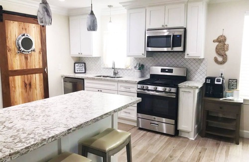 Step into this beautiful Coastal Paradise! Nestled in the heart of this magical island, Sand Casa awaits you with its recent renovations and delightful decor. A mere 2-3 minute drive transports you to the sandy shores, while the most popular attractions, including Pleasure Pier, Sea Wall, The Strand, and Schlitterbahn, are just a leisurely 3-5 minutes away. Prepare to immerse yourself in the endless fun that Galveston has to offer.