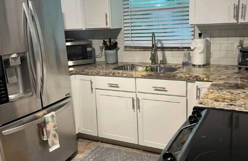This spacious paradise features a large living area with windows that flood the space with natural light, while the kitchen is equipped with stainless steel appliances and granite countertops. The master bedroom offers a peaceful oasis. Take it easy at this unique and tranquil getaway.This spacious paradise features a large living area with windows that flood the space with natural light, while the kitchen is equipped with everything you may need. The master bedroom offers a peaceful oasis with a king bed. Enjoy games with family at first floor with a pool and domino table, chest game , tv to enjoy a movie night or play your favorite videos. Queen bed in guest bedroom, sleep sofa, private pool, private bbq, many parking space for trailer, boat, etc. local channels, wifi