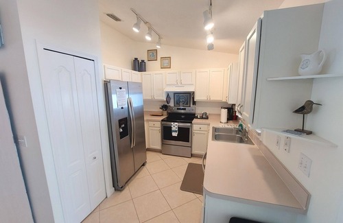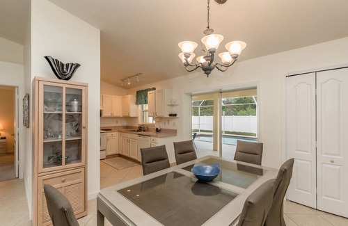Spacious 3Br/2Ba ~ 1 Master Suite ~ heated of pool is an 88 degrees anything high than 88 degrees an additional charge of $10 a day to accomadte the temp you would like. Covered Lanai! Large private patio with sunshade and lighting. Brand new sectional couch for pool areas and a table to seat 7.
