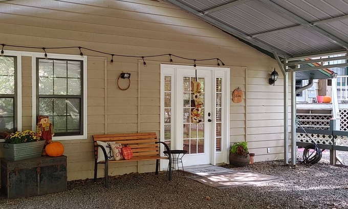 Adorable, farmhouse riverfront cottage in quiet neighborhood. Newly renovated with access to the Hiwassee river right out your front door for tubing, swimming, fishing or just relaxing in the private gazebo or roasting marshmallows on the firepit. Minutes away from downtown Murphy stores and restaurants, Cherokee River Valley Casino, just one mile from the John C. Campbell Folk school and much more. Ample parking, motorcycle and pet friendly.