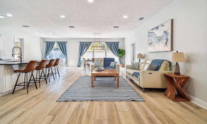 Paradise Vacay is Located in the World Famous Historic Sponge Docks , a Coastal Town on the Gulf Mexico. Great Place to Relax and have a lot of fun ! House has a lot of Natural Light, very comfortable and spacious with open Kitchen. Enjoy this 3br, 2ba and a Bonus TV room. Workspace for the remote worker’s needs & Pet Friendly.