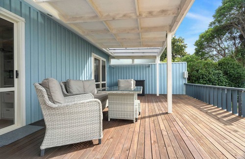 Guests have exclusive access to the entire house, including the beachfront deck, garden, and direct beach access. The kayaks are available for use, and there is free parking on-site.