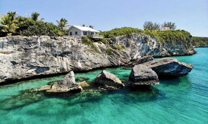 Guests at Bahama Sunset have a view of the crystalline blue-green waters from every window, and each night can watch stunning sunsets glide into the ocean from the wrap-around deck that hangs over the cliffs. You'll find excellent snorkeling and diving a one minute walk down the stone cut steps that bring you to your own private lagoon.