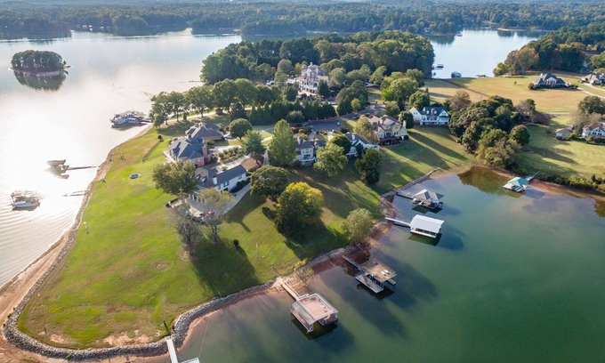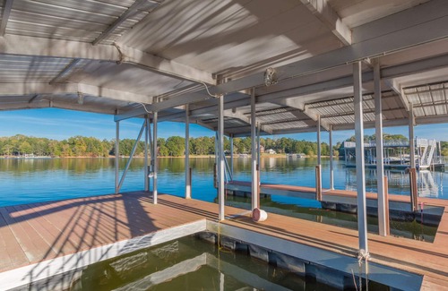 The Perfect lake getaway you've been waiting for! 6,000+ Sq ft spacious home right on the lake. WI-FI and brand new 72 inch and 48 inch HD TVs with cable in living room and sunroom, Great for FOOTBALL season. Double Slip-Dock w/deep water access & upper deck. Huge level yard to play sports/games. 6 bedrooms/5.5 bathrooms including a luxurious master on main suite w/jetted tub. Large basement with games, activities, & kitchenette w/bar for quiet privacy to rest of the house. Enjoy the amenities of nearby Port Royale Marina to rent boats & jet skis or drinks/dinner at restaurants!