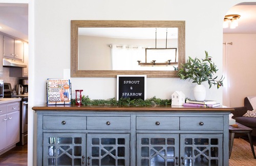 The home has been completely remodeled and has a modern farmhouse decor and feel.
