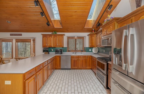 • A fully stocked kitchen on the main level with stainless steel appliances and equipped with everything you need for easy meal preparation.