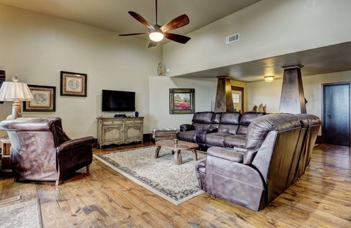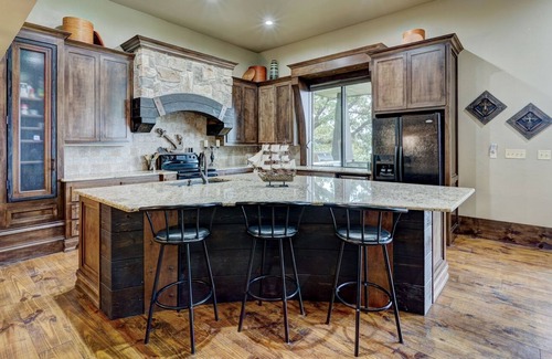 The house is the perfect place to gather for a great time at the lake. You'll love the large living room with the beautiful entertainer's kitchen and large leather sectional. You won't want to miss the large outdoor deck, complete with a flat screen TV, grill and view of the lake.