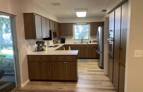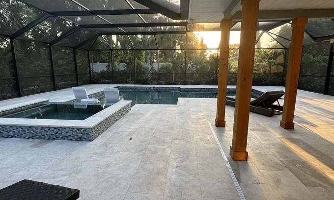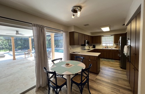 The open floor plan of this home is 2850 square feet which gives guests enough room to spread out and relax. The newly completed outdoor space is your own private resort! Totaling 2350 square feet, it includes a saltwater pool and spa and a 500 square foot covered lanai with a table that pulls out to seat 12 people. The outdoor space is screened with 20x20 mesh which keeps this space 99% bug free (no bug spray needed) and reduces the UV rays of the sun (significantly less suncreen). PTP has new flooring, upscale furniture, and brand new appliances. It is perfectly located in a safe neighborhood walking distance to the Bradenton Country Club and just minutes from Holmes Beach, downtown Bradenton, and Robinson's Preserve. Stay with us so there's room in the budget for kayaking, dining out, sunset boat tours, wave running or charter boat fishing. Take day trips to Weeki Wachee River, Myakka State Park, The University Town Center, Adventure Island, Busch Gardens, Sea World or Disney World. Indulge yourself in all that Florida's Gulf Coast has to offer.